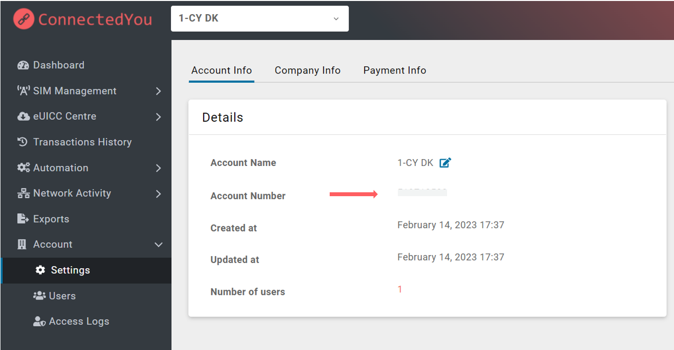 Using the API endpoint: [`https://api.connectedyou.io/v1`](https://api.connectedyou.io/v1), you can now retrieve the account ID for your user.&#x20;